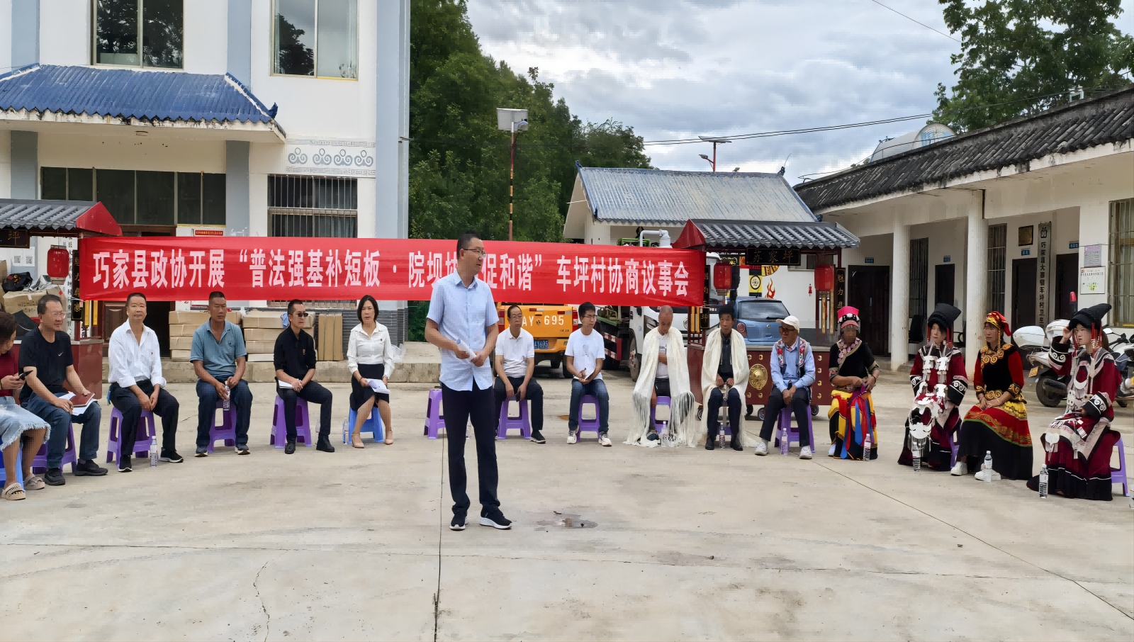 6月28日,巧家县政协在大寨镇车坪村开展以“普法强基补短板·院坝协商促和谐”为议题的协商活动,深入贯彻党的二十大精神,推动政协协商与基层协商有效衔接,着力打通院坝协商“最后一公里”,发挥好政协在基层社会治理中的职能作用,让院坝协商成为政协履职的创新载体。
