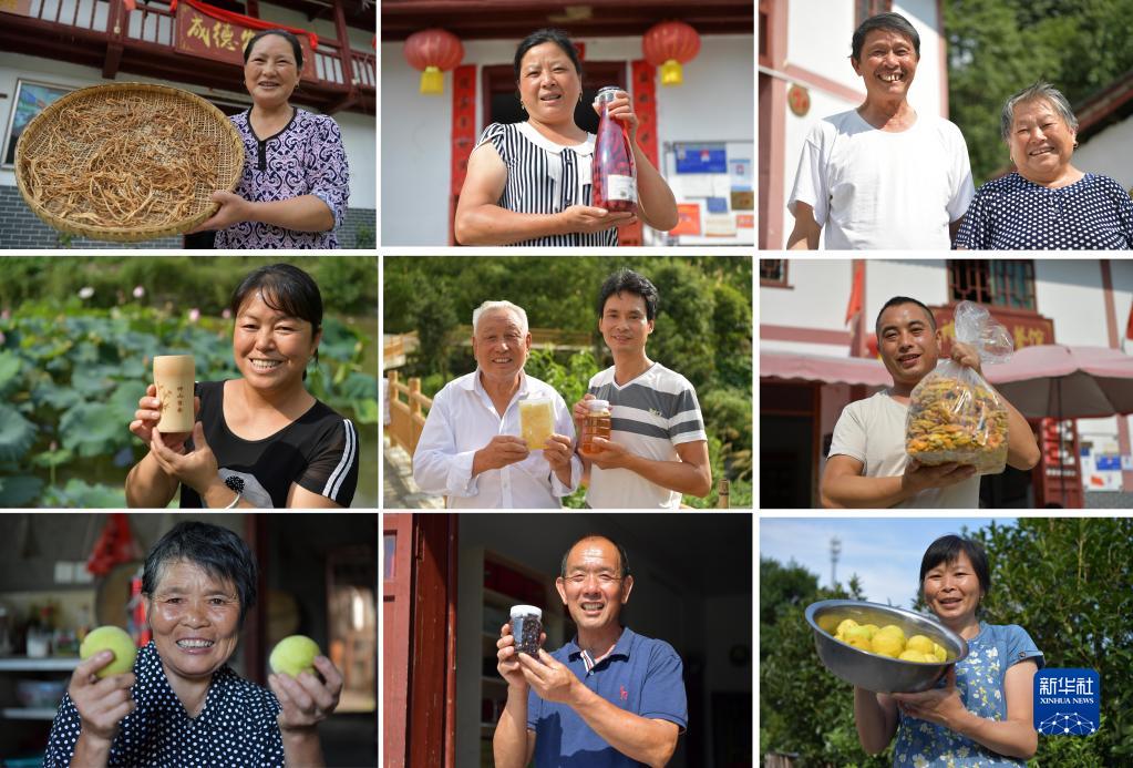 拼版照片:这是江西省井冈山市神山村村民的笑脸合集(2020年7月15日摄)。地处山区腹地的神山村曾是江西省井冈山市最偏远的贫困村之一,贫困发生率曾达30%以上。当地通过发展扶贫产业和乡村旅游,村民收入显著增加,并在2017年2月正式脱贫。新华社记者 彭昭之 摄