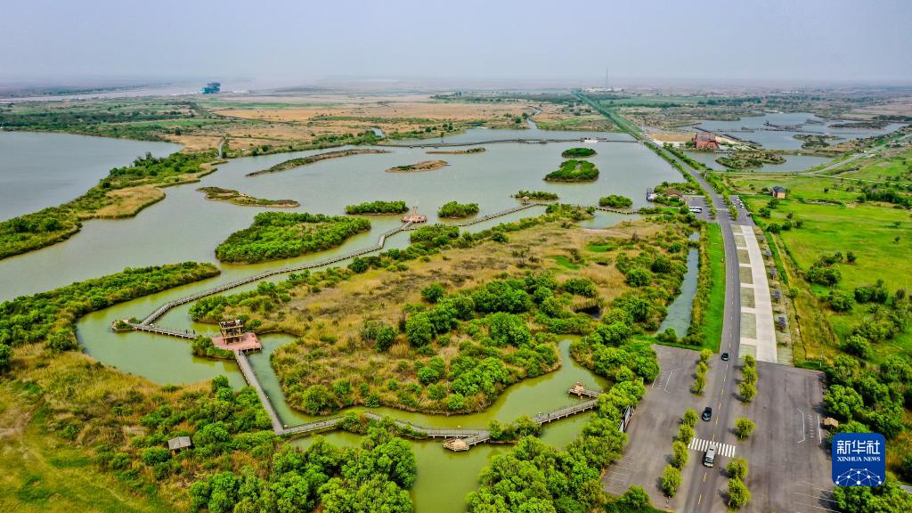 这是5月13日拍摄的山东黄河三角洲国家级自然保护区景色(无人机照片)。新华社记者 郭绪雷 摄