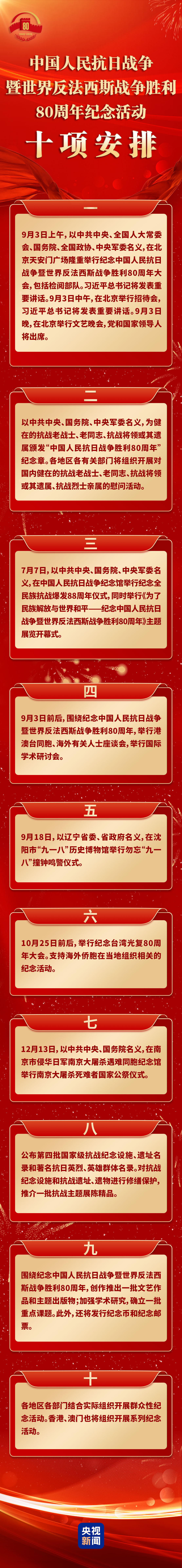 抗战胜利80周年纪念活动 十项安排一图汇总