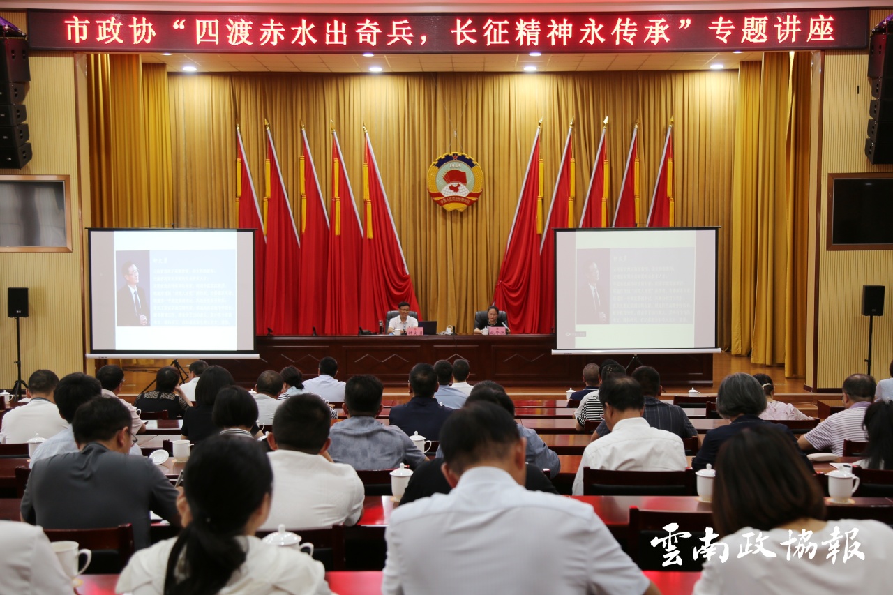 7月16日,昭通市政协举办“四渡赤水出奇兵 长征精神永传承”专题讲座,邀请云南省语文特级教师、云南省享受省政府特殊津贴专家、昭通市首届“兴昭人才奖”获得者、昭通学院客座教授钟大勇开展专题讲座。