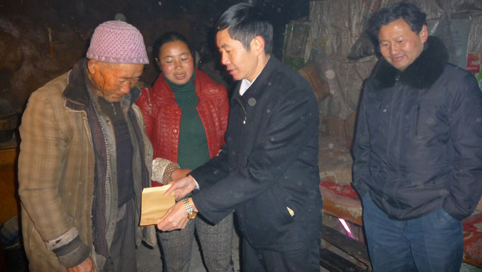 2013年1月8日,昭通市政协常务副主席张永前在市政协港澳台侨联络委主任杨勇、昭阳区政协主席罗勇的陪同下,到昭阳区小龙洞乡寒坡岭自然村视察民族团结示范点建设,并慰问了贫困户锁贤川、陶胜强。