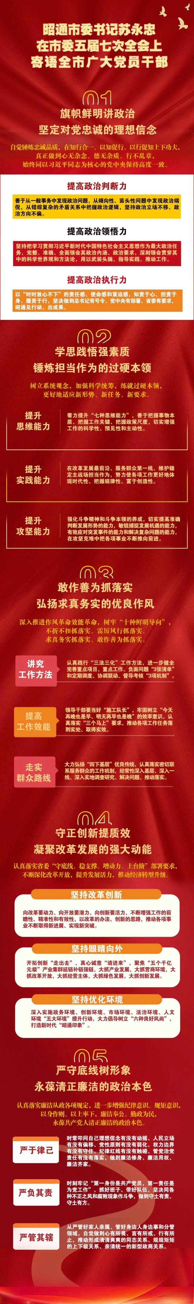 寄语|中国共产党昭通市第五届委员会第七次全体会议上,市委书记苏永忠寄语全市广大党员干部